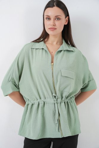 Kadın uzun kollu yakalı önden düğmeli aerobin gömlek