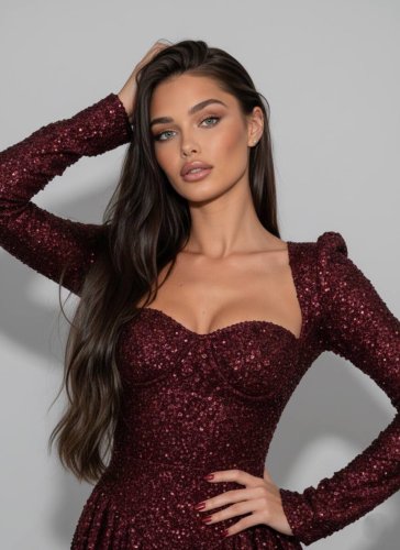 • Kadın uzun kollu armut yaka pul payet işlemeli mini gece elbisesi