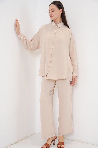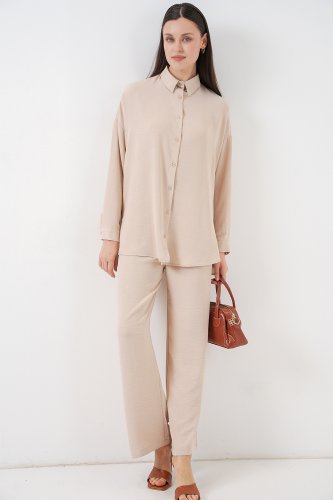 • Gömlek Pantolon İkili Takım 30063 Krem