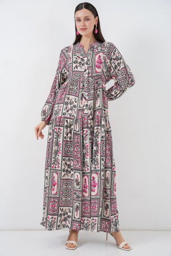 • Desenli Uzun Tesettür Elbise 2585 B Fuşya