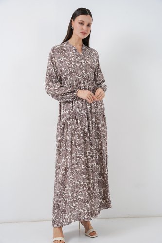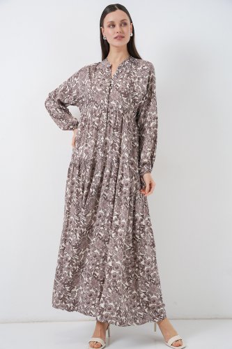 • Desenli Uzun Tesettür Elbise 2585 E Kahve