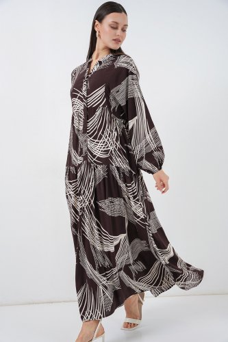 • Desenli Uzun Tesettür Elbise 2585 BKahverengi